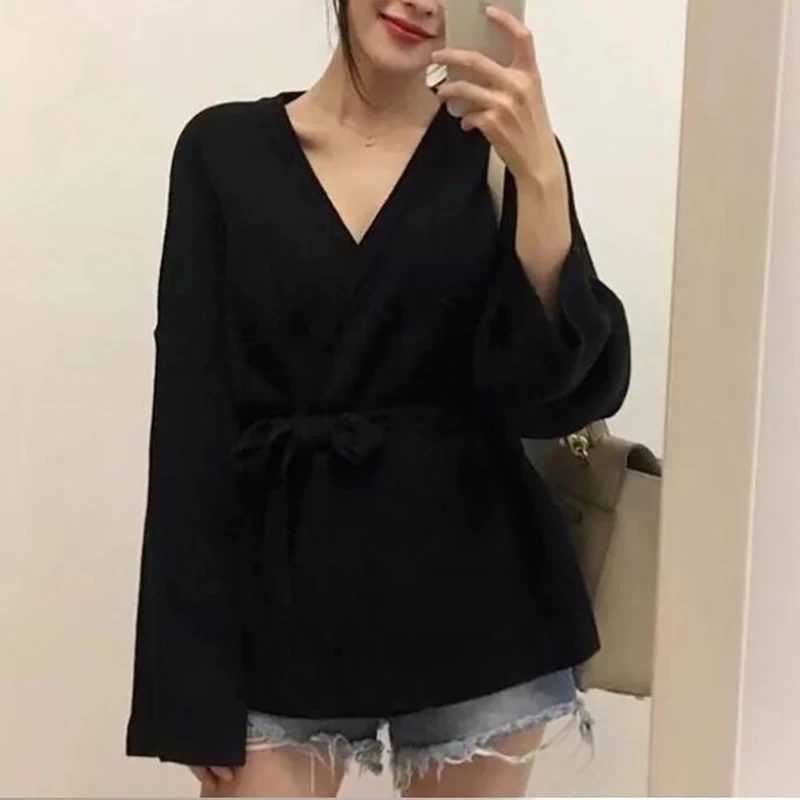 Buy 2019 Autumn Lazy oaf Khaki Cross Lacing-up Cardigan Korean Style Women V -neck Wool Knitted Loose C Right Here and Right Now, Because before price is changed you will just pay for US $17.48, not in Reguler Price at US $21.58. Yap! This is I mean you will Save 19%